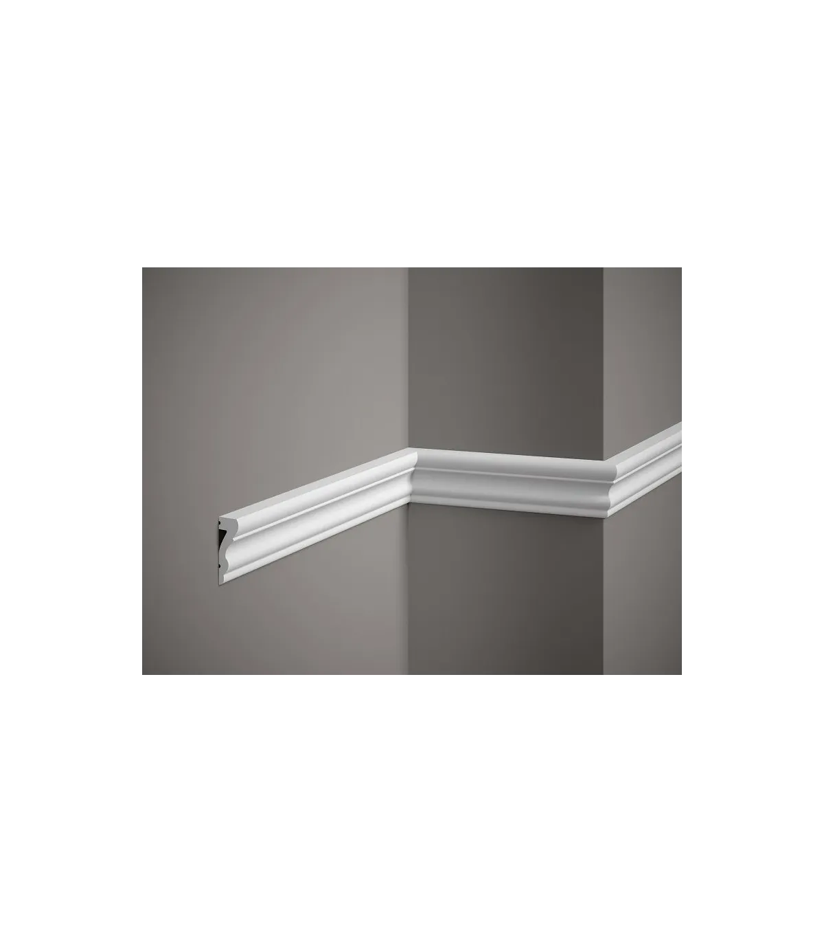 Nástenná soklová lišta MD314 je minimalistický dizajn s jemnou dekoráciou v strede soklovej lišty. Profil bol vyrobený z extrémne ľahkého ProFoamu, ktorý vďaka svojej hmotnosti umožňuje bezproblémovú montáž v akejkoľvek výške steny. MD314 bude fungovať ako nástenná a odrezaná lišta, ale aj ako prvok väčšej dekoratívnej kompozície. Soklová lišta má vodotesné vlastnosti, takže nie je problém s jej montážou v interiéroch vystavených neustálemu kontaktu s vlhkosťou. Dobre si poradí aj s UV žiarením – pri intenzívnom slnku sa nedrobí a nežltne. Môžete si byť istí, že aj po mnohých rokoch používania si nástenná lišta zachová svoj bezchybný vzhľad. Dĺžka je 2,0 m.