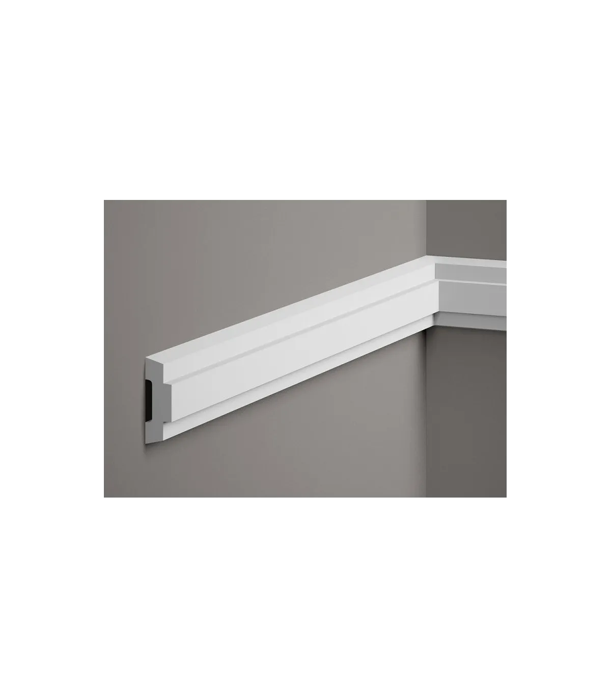 Nástenná soklová lišta MD317 je minimalistický dizajn s jemnou dekoráciou v strede soklovej lišty. Profil bol vyrobený z extrémne ľahkého ProFoamu, ktorý vďaka svojej hmotnosti umožňuje bezproblémovú montáž v akejkoľvek výške steny. MD317 bude fungovať ako nástenná a odrezaná lišta, ale aj ako prvok väčšej dekoratívnej kompozície. Soklová lišta má vodotesné vlastnosti, takže nie je problém s jej montážou v interiéroch vystavených neustálemu kontaktu s vlhkosťou. Dobre si poradí aj s UV žiarením – pri intenzívnom slnku sa nedrobí a nežltne. Môžete si byť istí, že aj po mnohých rokoch používania si nástenná lišta zachová svoj bezchybný vzhľad. Dĺžka je 2,0 m.