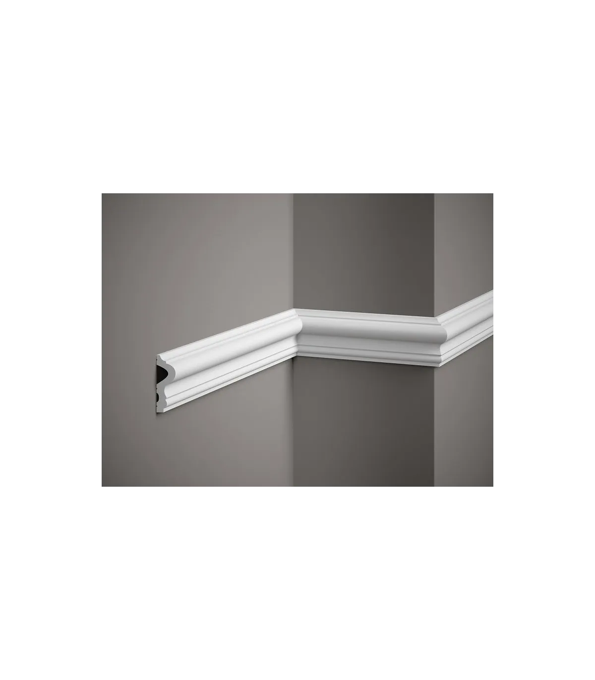 Nástenná soklová lišta MD346 je minimalistický dizajn s jemnou dekoráciou v strede soklovej lišty. Profil bol vyrobený z extrémne ľahkého ProFoamu, ktorý vďaka svojej hmotnosti umožňuje bezproblémovú montáž v akejkoľvek výške steny. MD346 bude fungovať ako nástenná a odrezaná lišta, ale aj ako prvok väčšej dekoratívnej kompozície. Soklová lišta má vodotesné vlastnosti, takže nie je problém s jej montážou v interiéroch vystavených neustálemu kontaktu s vlhkosťou. Dobre si poradí aj s UV žiarením – pri intenzívnom slnku sa nedrobí a nežltne. Môžete si byť istí, že aj po mnohých rokoch používania si nástenná lišta zachová svoj bezchybný vzhľad. Dĺžka je 2,0 m.