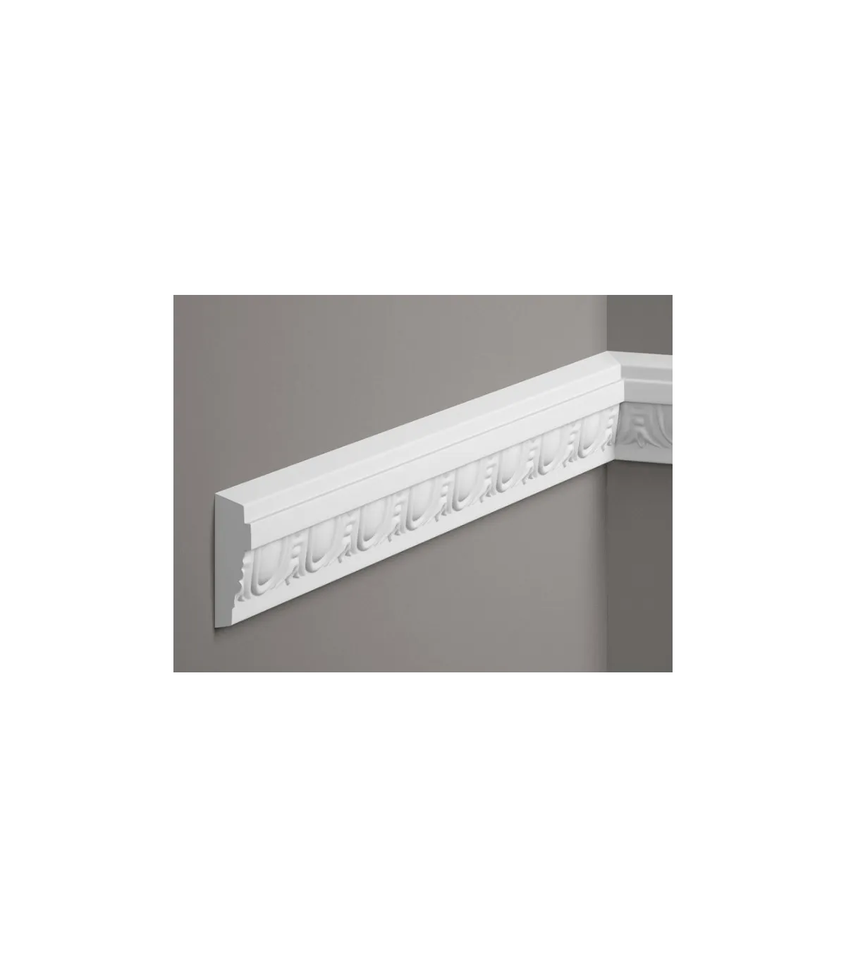 Nástenná soklová lišta MDC255 je minimalistický dizajn s jemnou dekoráciou v strede soklovej lišty. Profil bol vyrobený z extrémne ľahkého ProFoamu, ktorý vďaka svojej hmotnosti umožňuje bezproblémovú montáž v akejkoľvek výške steny. MDC255 bude fungovať ako nástenná a odrezaná lišta, ale aj ako prvok väčšej dekoratívnej kompozície. Soklová lišta má vodotesné vlastnosti, takže nie je problém s jej montážou v interiéroch vystavených neustálemu kontaktu s vlhkosťou. Dobre si poradí aj s UV žiarením – pri intenzívnom slnku sa nedrobí a nežltne. Môžete si byť istí, že aj po mnohých rokoch používania si nástenná lišta zachová svoj bezchybný vzhľad. Dĺžka je 2,0 m.