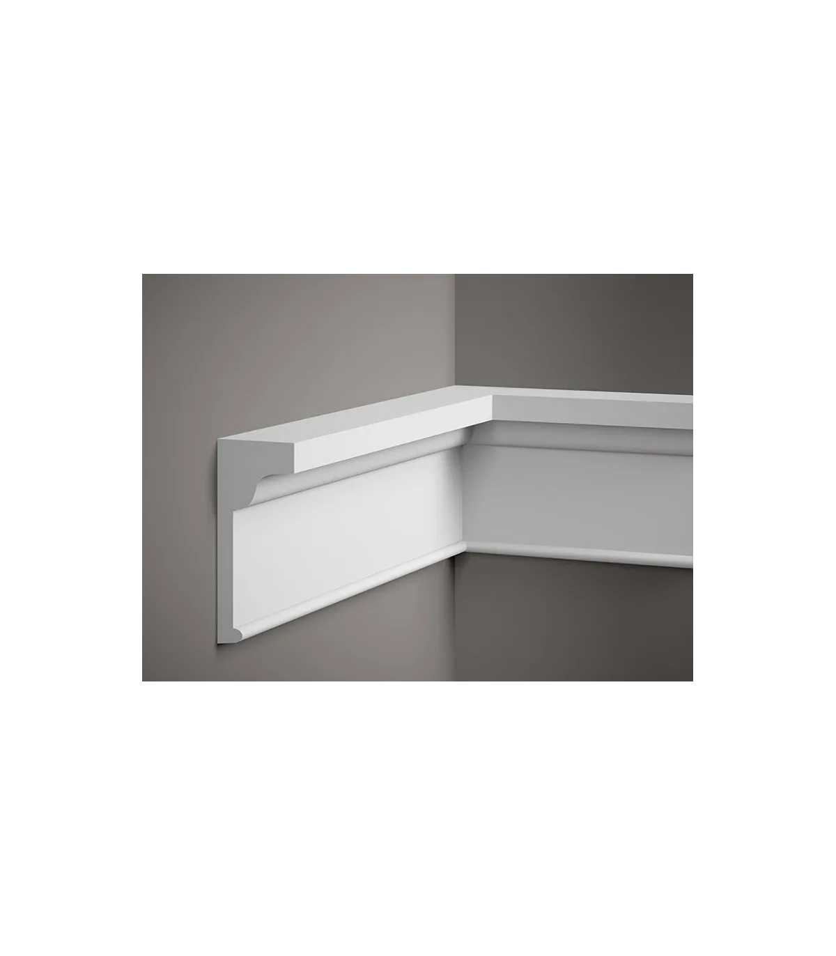 Nástenná soklová lišta MDD335 je minimalistický dizajn s jemnou dekoráciou v strede soklovej lišty. Profil bol vyrobený z extrémne ľahkého ProFoamu, ktorý vďaka svojej hmotnosti umožňuje bezproblémovú montáž v akejkoľvek výške steny. MDD335 bude fungovať ako nástenná a odrezaná lišta, ale aj ako prvok väčšej dekoratívnej kompozície. Soklová lišta má vodotesné vlastnosti, takže nie je problém s jej montážou v interiéroch vystavených neustálemu kontaktu s vlhkosťou. Dobre si poradí aj s UV žiarením – pri intenzívnom slnku sa nedrobí a nežltne. Môžete si byť istí, že aj po mnohých rokoch používania si nástenná lišta zachová svoj bezchybný vzhľad. Dĺžka je 2,0 m.