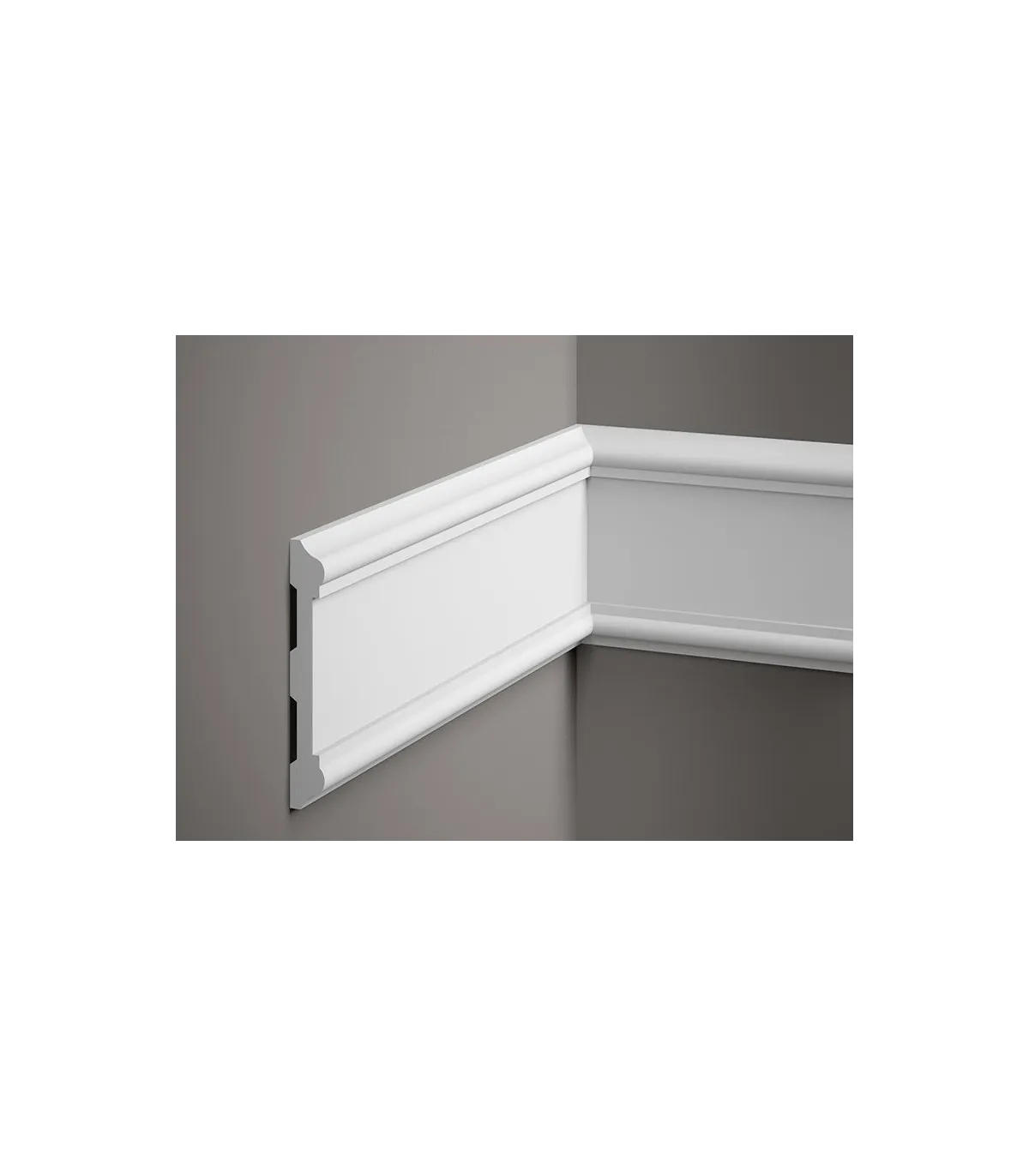 Nástenná soklová lišta MDD410 je minimalistický dizajn s jemnou dekoráciou v strede soklovej lišty. Profil bol vyrobený z extrémne ľahkého ProFoamu, ktorý vďaka svojej hmotnosti umožňuje bezproblémovú montáž v akejkoľvek výške steny. MDD410 bude fungovať ako nástenná a odrezaná lišta, ale aj ako prvok väčšej dekoratívnej kompozície. Soklová lišta má vodotesné vlastnosti, takže nie je problém s jej montážou v interiéroch vystavených neustálemu kontaktu s vlhkosťou. Dobre si poradí aj s UV žiarením – pri intenzívnom slnku sa nedrobí a nežltne. Môžete si byť istí, že aj po mnohých rokoch používania si nástenná lišta zachová svoj bezchybný vzhľad. Dĺžka je 2,0 m.