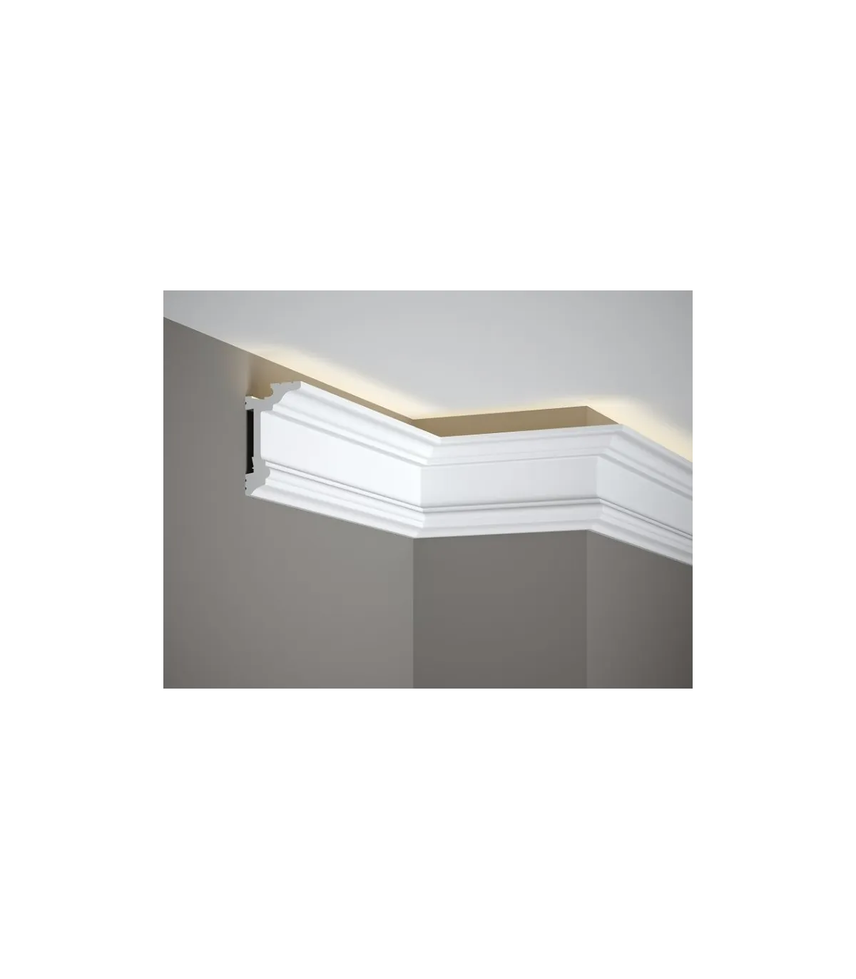 Dekoratívna stropná lišta je skvelý spôsob, ako dodať interiéru charakter. Vďaka bohatej kolekcii vzorov dokážeme dodať eleganciu, štýl a originalitu každému priestoru. Ľahký a ľahko zostaviteľný. Dokonale maskujú nerovnosti stien a ich drobné chyby. Sú vhodné na maľovanie vodou riediteľnými farbami (akrylový latex a pod.). Od elegantného glamour po jednoduché, moderné formy. Polystyrénová lišta. Dĺžka lišty je 2,0 m.