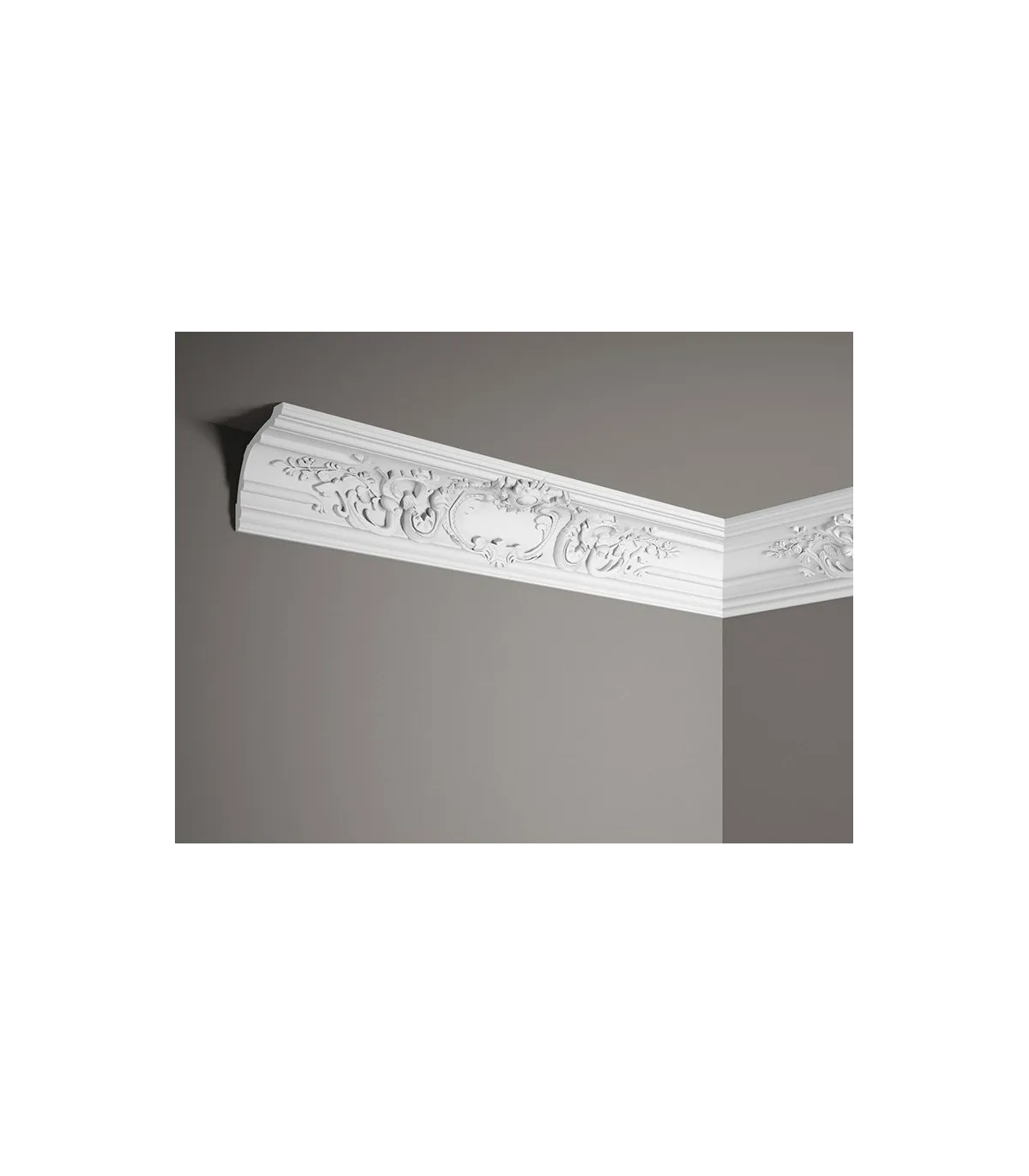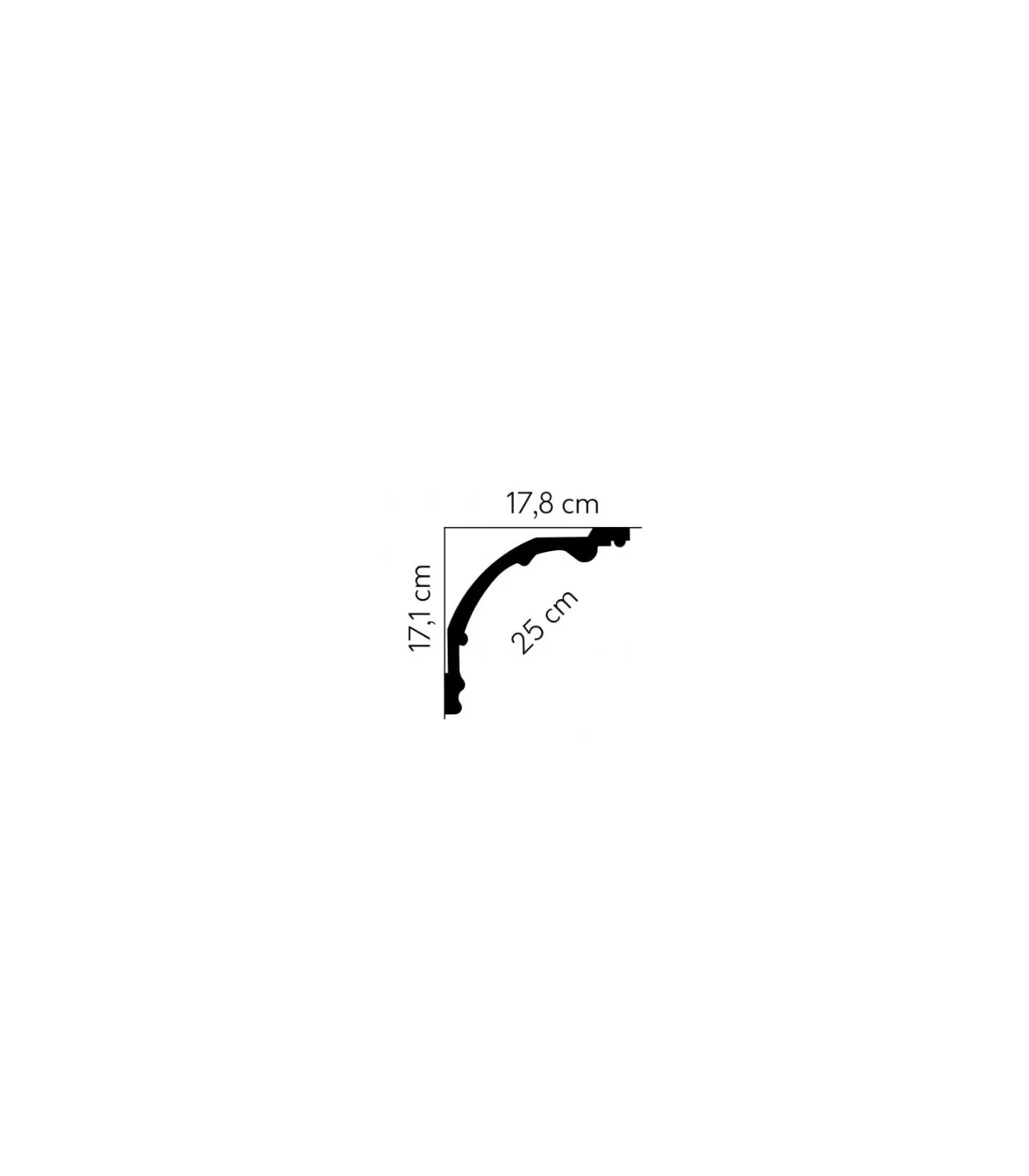 Dekoratívna stropná lišta je skvelý spôsob, ako dodať interiéru charakter. Vďaka bohatej kolekcii vzorov dokážeme dodať eleganciu, štýl a originalitu každému priestoru. Ľahký a ľahko zostaviteľný. Dokonale maskujú nerovnosti stien a ich drobné chyby. Sú vhodné na maľovanie vodou riediteľnými farbami (akrylový latex a pod.). Od elegantného glamour po jednoduché, moderné formy. Polystyrénová lišta. Dĺžka lišty je 2,0 m.