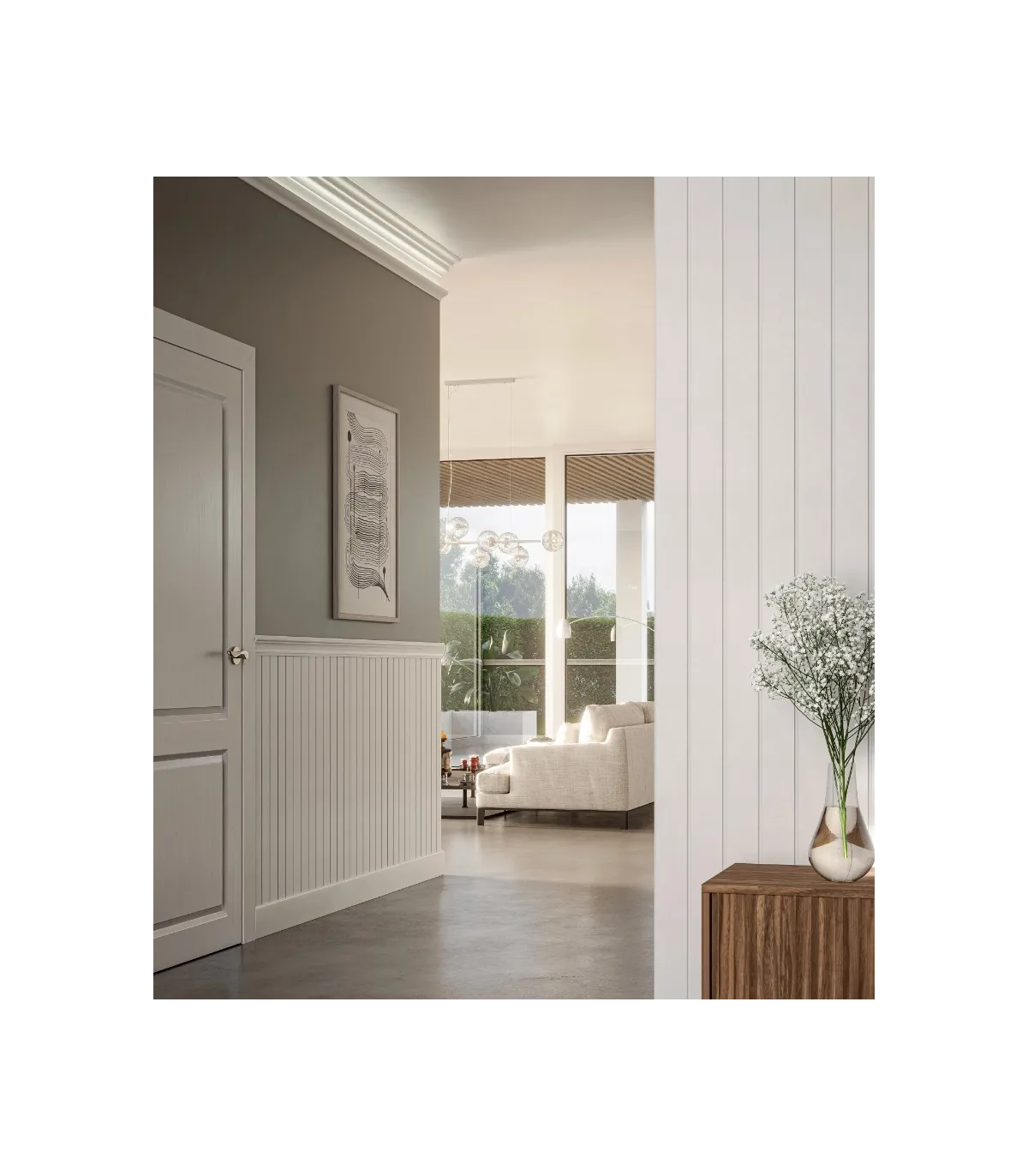 Lišta sa skvele hodí na vertikálne usporiadanie, ktoré na stene vytvára samostatné sekcie. Ďalším veľmi zaujímavým a bežne montovaným dekoratívnym prvkom sú rámové kompozície. Vzor boazérie je ideálny ako pozadie na stenu s televízorom. Ak ste nepočuli o kazetovej boazérii, ide o boazériu, pri ktorej je výplň steny medzi dolnou lištou (podlahovým soklom) a stenovou lištou, ktorá delí stenu v horizontálnom usporiadaní, tvorená vertikálnymi obkladovými lištami narezanými na rovnakú dĺžku. Vzdialenosť medzi nimi je rovnaká, čím sa medzi lištami vytvorí „vnútorný“ priestor, ktorý po natretí niekedy na inú farbu vytvára výnimočný dekoratívny efekt.