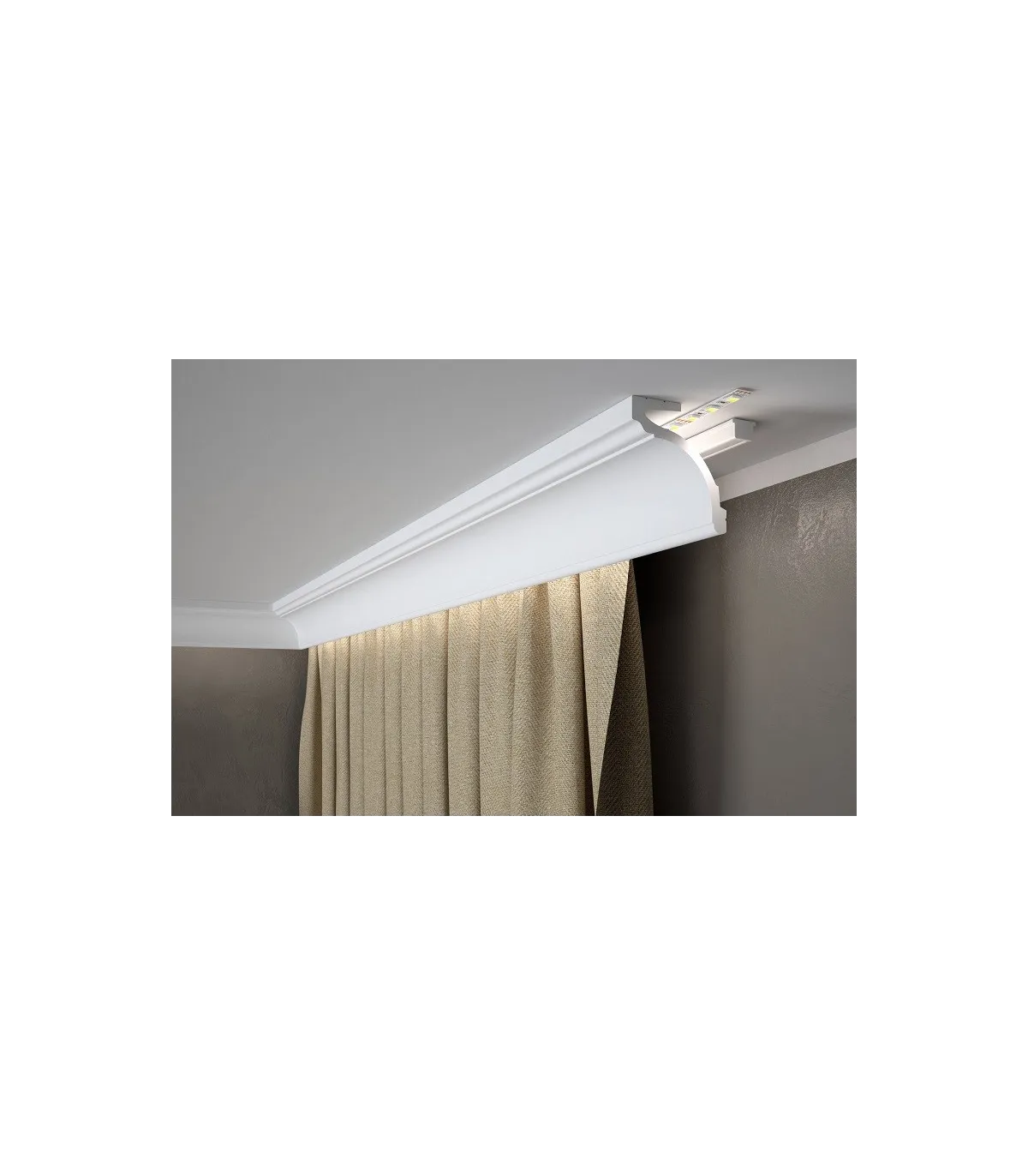 Lišta v modernom dizajne určená špeciálne na zakrytie garniže. Predstavuje elegantnú alternatívu k zakrytiu často nevzhľadných garniž pomocou sadrokartónových alebo drevených dosiek. Je ľahká a umožňuje umiestnenie dnes toľko obľúbeného LED osvetlenia.