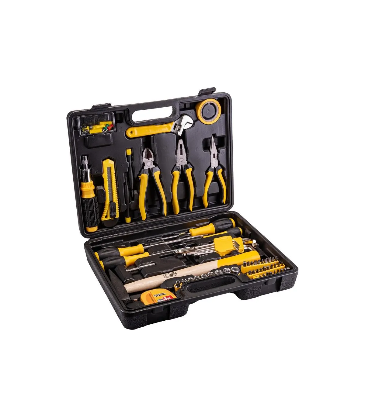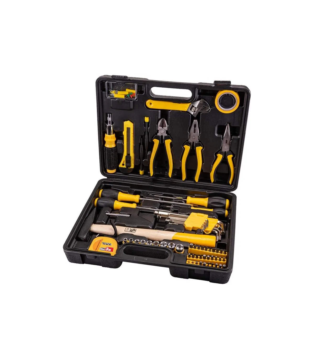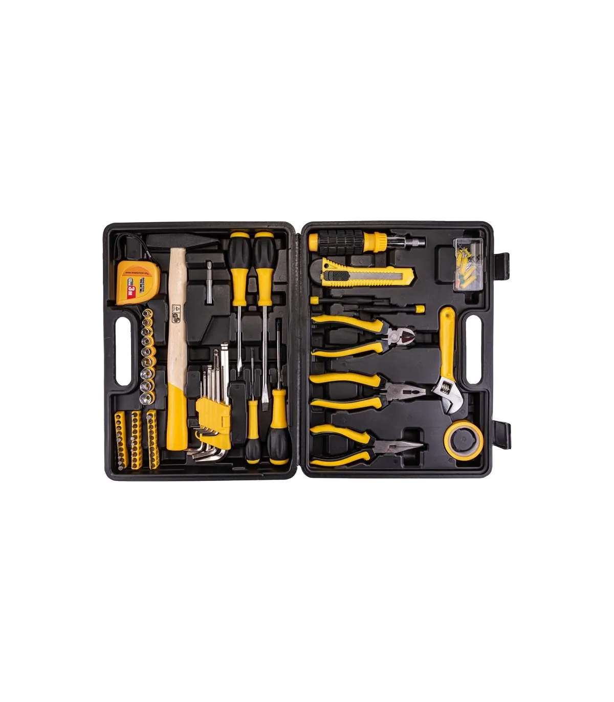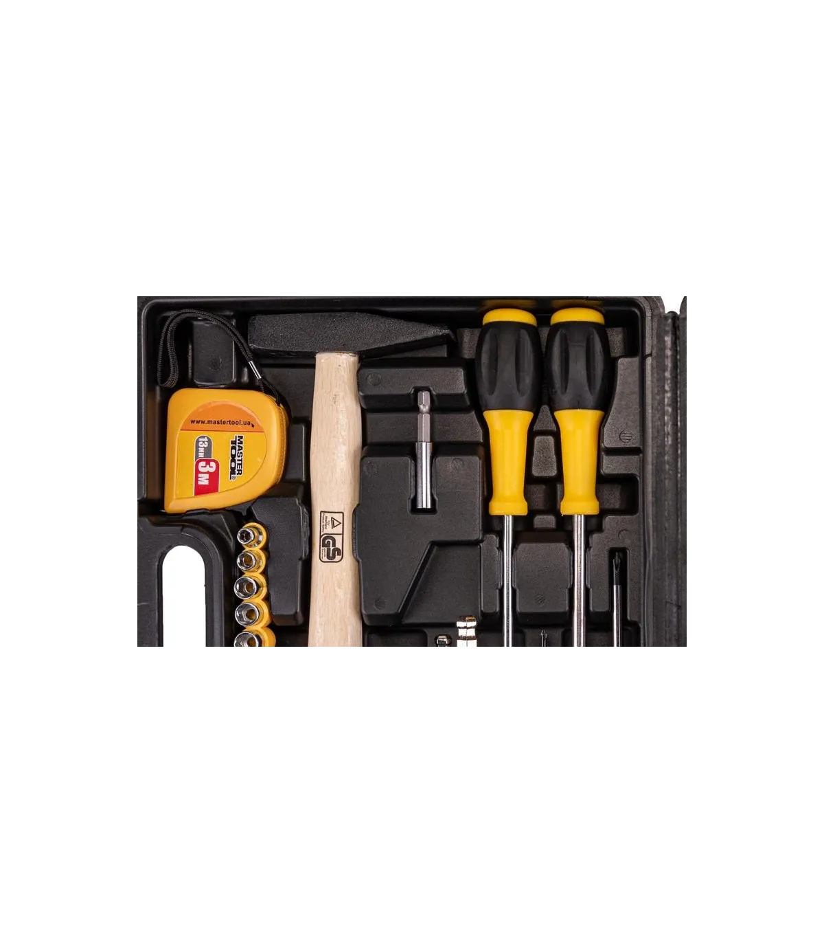Súprava nástrojov Mastertool 78-0330 je určená na používanie pri drobných domácich opravách a v dielniach. Obsahuje 149 nevyhnutných prvkov, ako sú kladivo, kombinované kliešte, sada skrutkovačov, imbusy, meracia páska, nôž, univerzálny kľúč a veľké množstvo upevňovacích prvkov, bez ktorých by oprava nebola možná. Pre pohodlné používanie sú všetky nástroje umiestnené v samostatných bunkách. Plastový kufor udržiava všetky nástroje v bezpečí a nezaberá veľa miesta pri skladovaní.