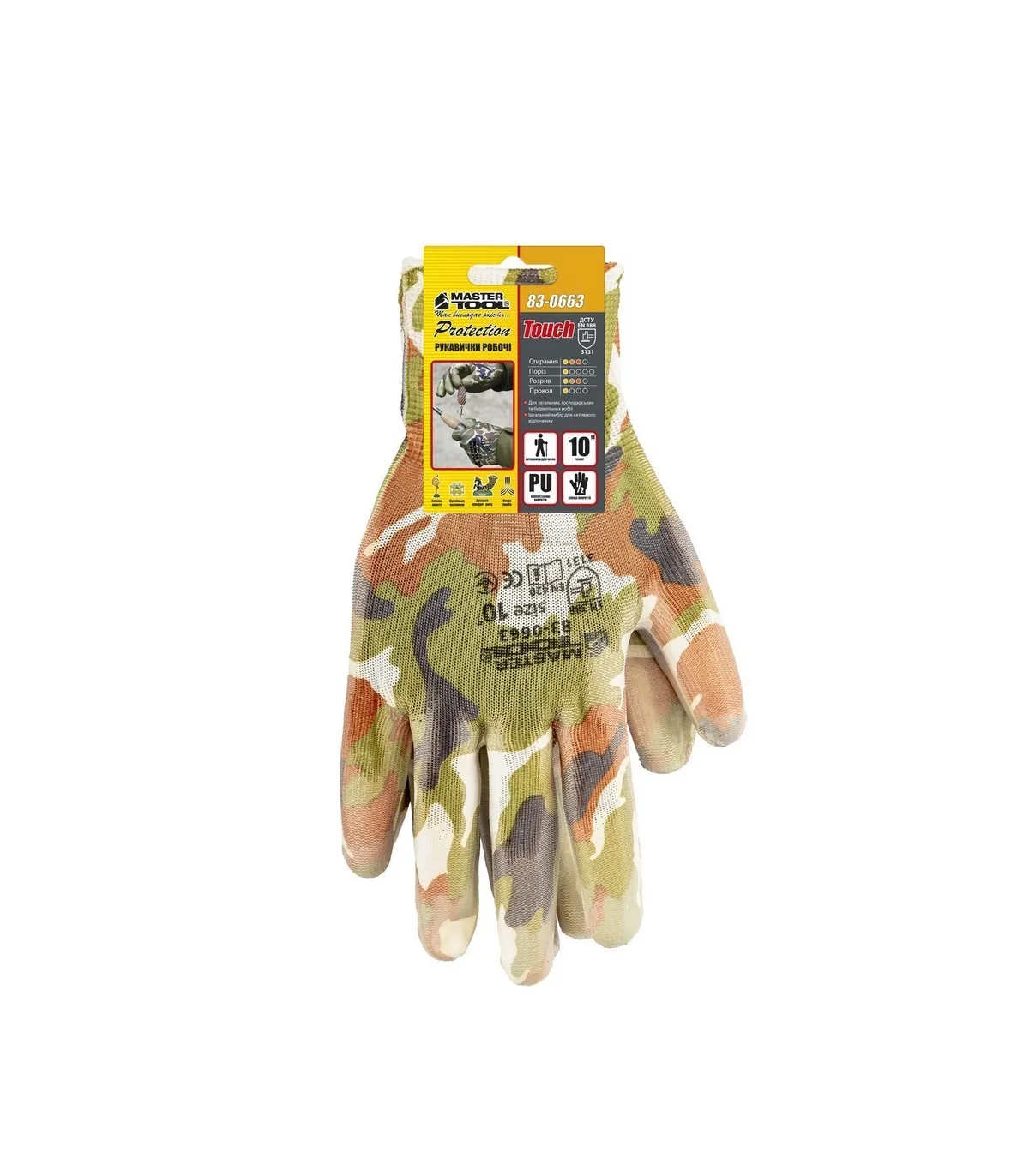 Rukavice pracovné MASTERTOOL pletené bezšvové s PU povlakom Khaki 10" 83-0663