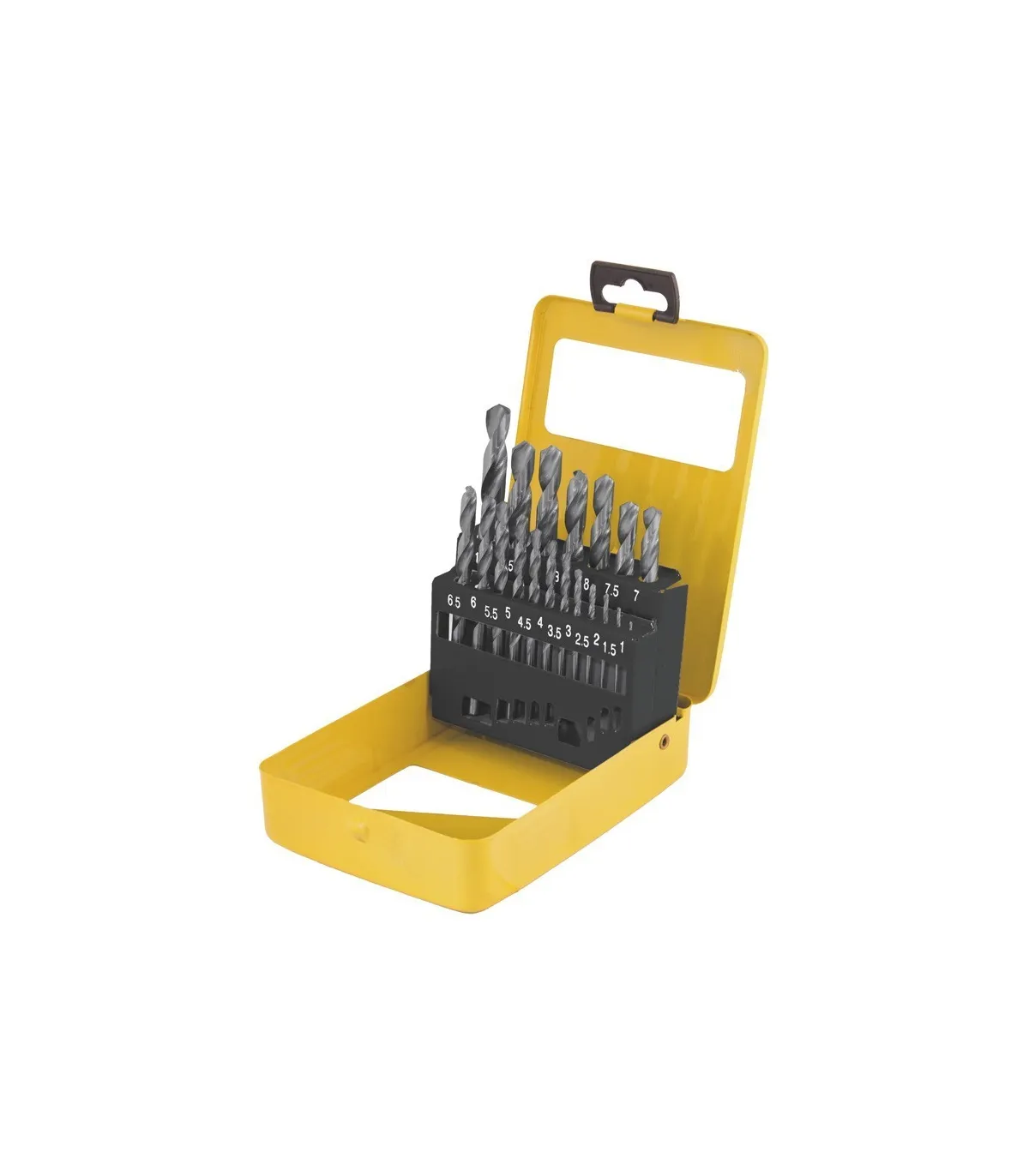 Vyrobené z rýchloreznej ocele HSS s tvrdosťou HRC 60-62 a uhlom brousenia 118°, obsahuje vŕtačky s priemermi od 1.0 do 10.0 mm.