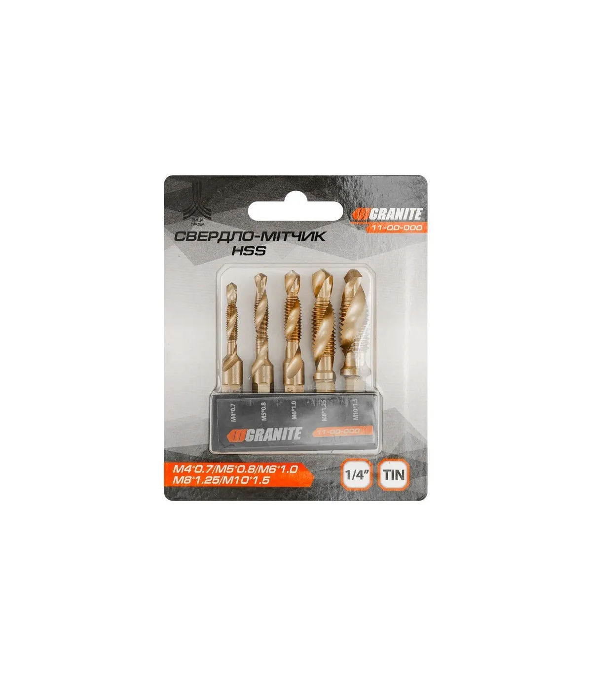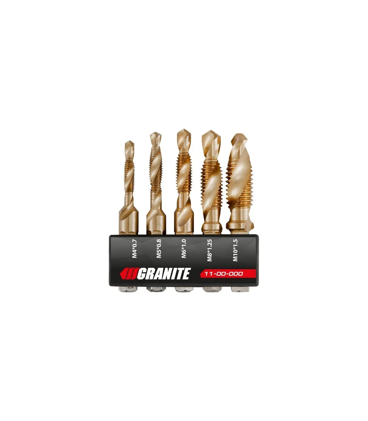 Sada vrtákov GRANITE 5 ks šesťuholníková stopka vŕtačka HSS M4-M10, závit skrutkový kohútik DIN338 11-00-000