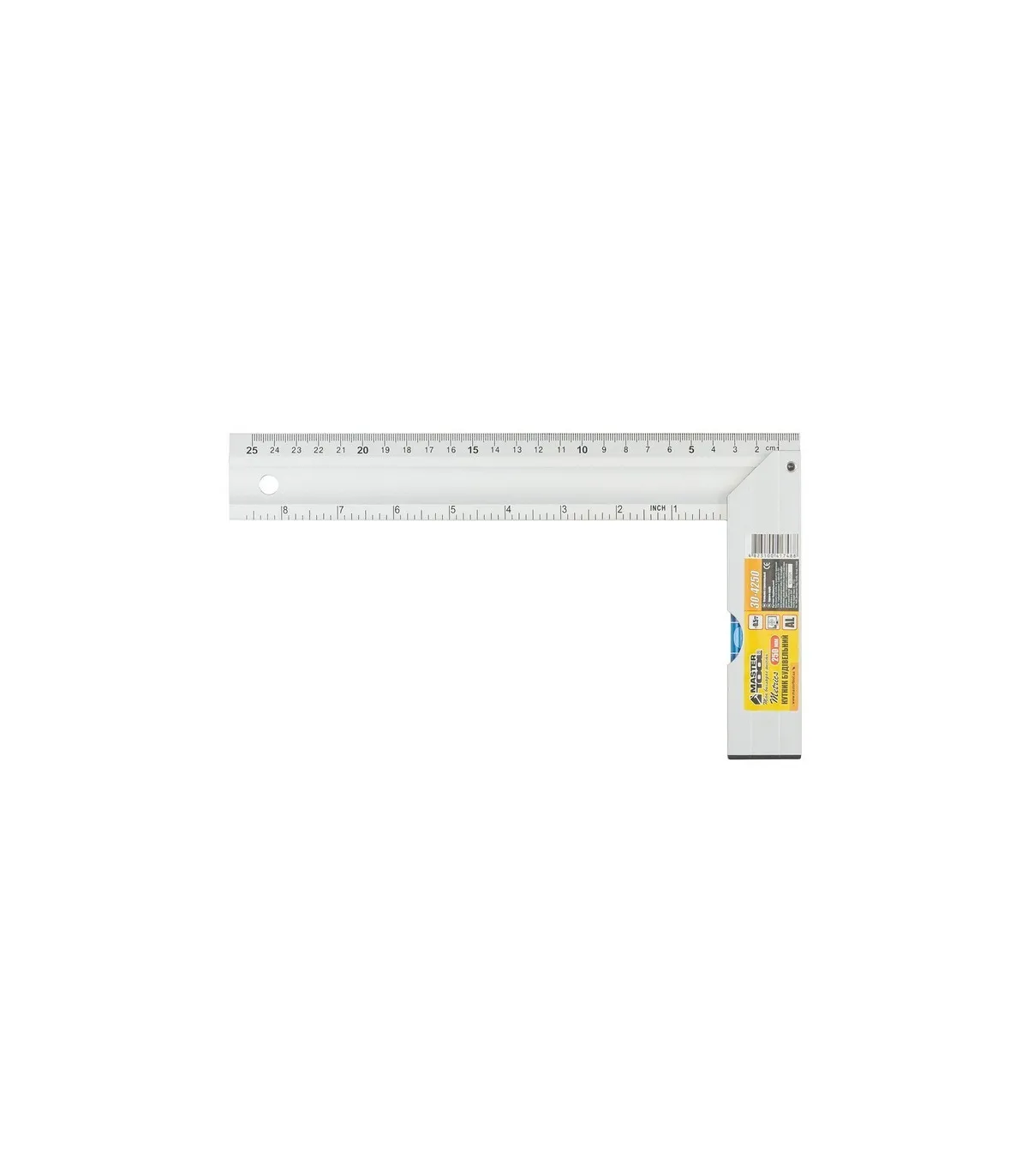 Uholník stolársky hliníkový 250 mm s libelami 0,5 mm/m a presnosťou 0,03° je ideálnym nástrojom pre presné označovanie a kontrolu priamych uhlov.