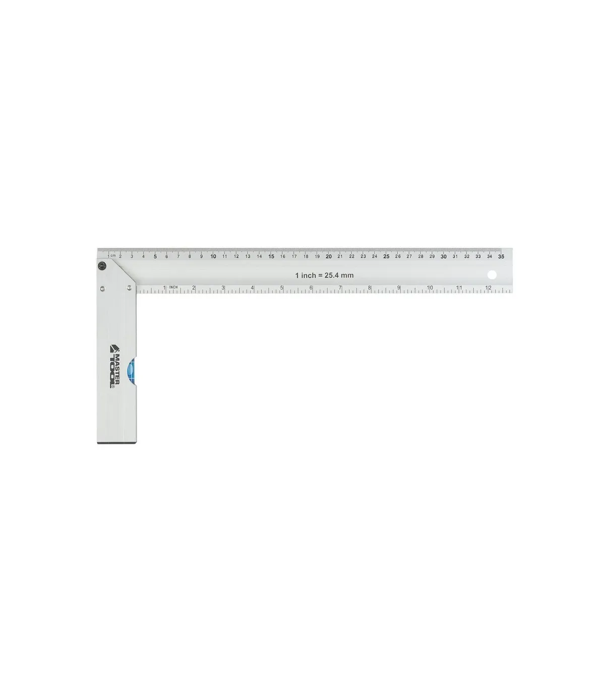 Uholník stolársky hliníkový 350 mm s libely 0,5 mm/m a presnosťou 0,03° je ideálnym nástrojom pre presné označovanie a kontrolu pravých uhlov.