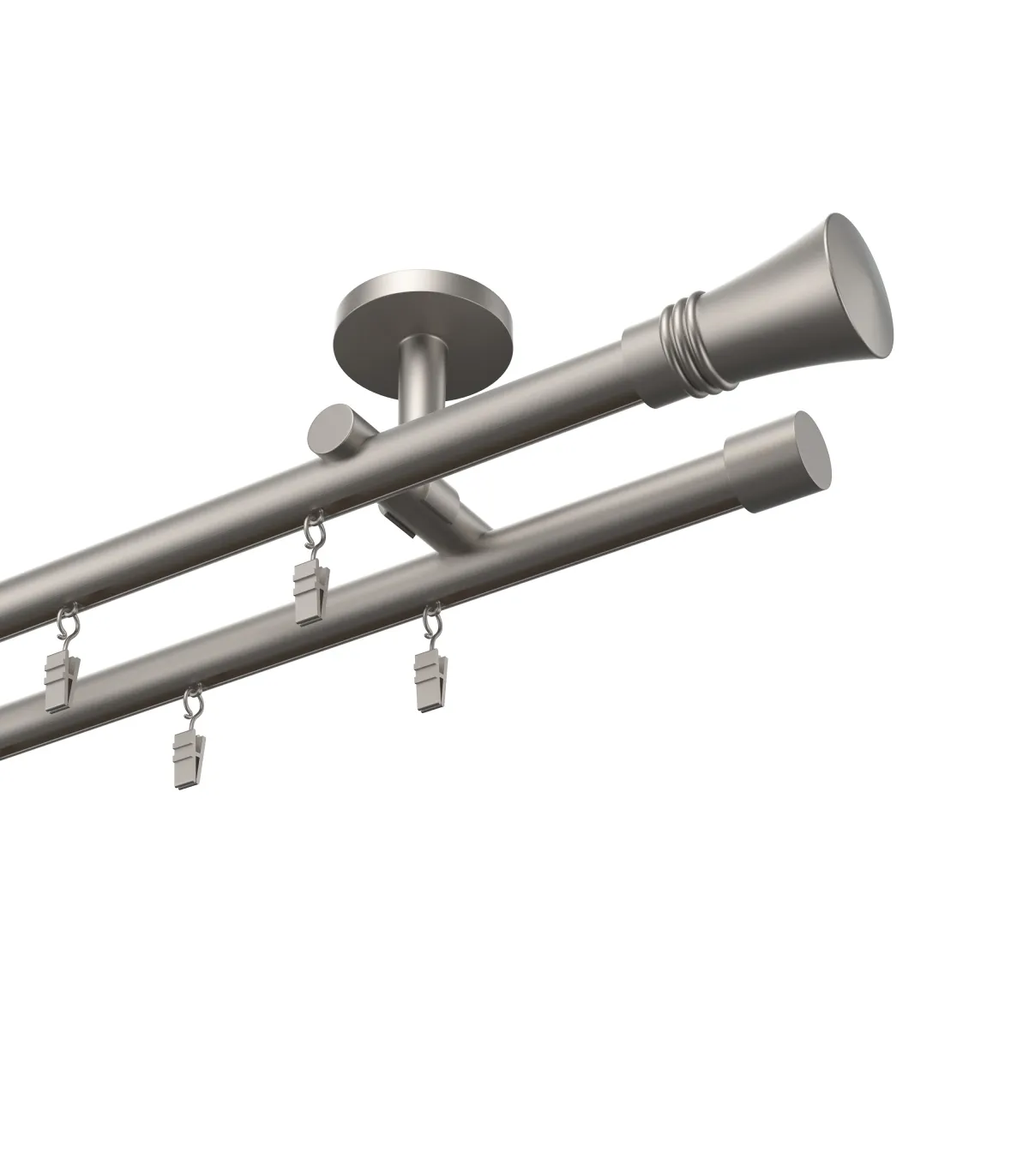 Koľajnice sú vyrobené z kvalitného hliníka, vďaka čomu sú odolné a ľahké. Ich matné strieborné prevedenie dodá miestnosti moderný vzhľad a dokonale zladí s každým typom interiéru. Koľajnice sú jednoducho montovateľné a vhodné pre všetky typy závesov.