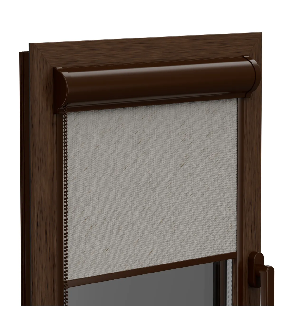 Estetická a jemná hliníková kazeta a vodiace lišty dokonale ladia s rámom okna a svojou funkčnosťou poskytujú ešte lepšiu ochranu pred slnkom.